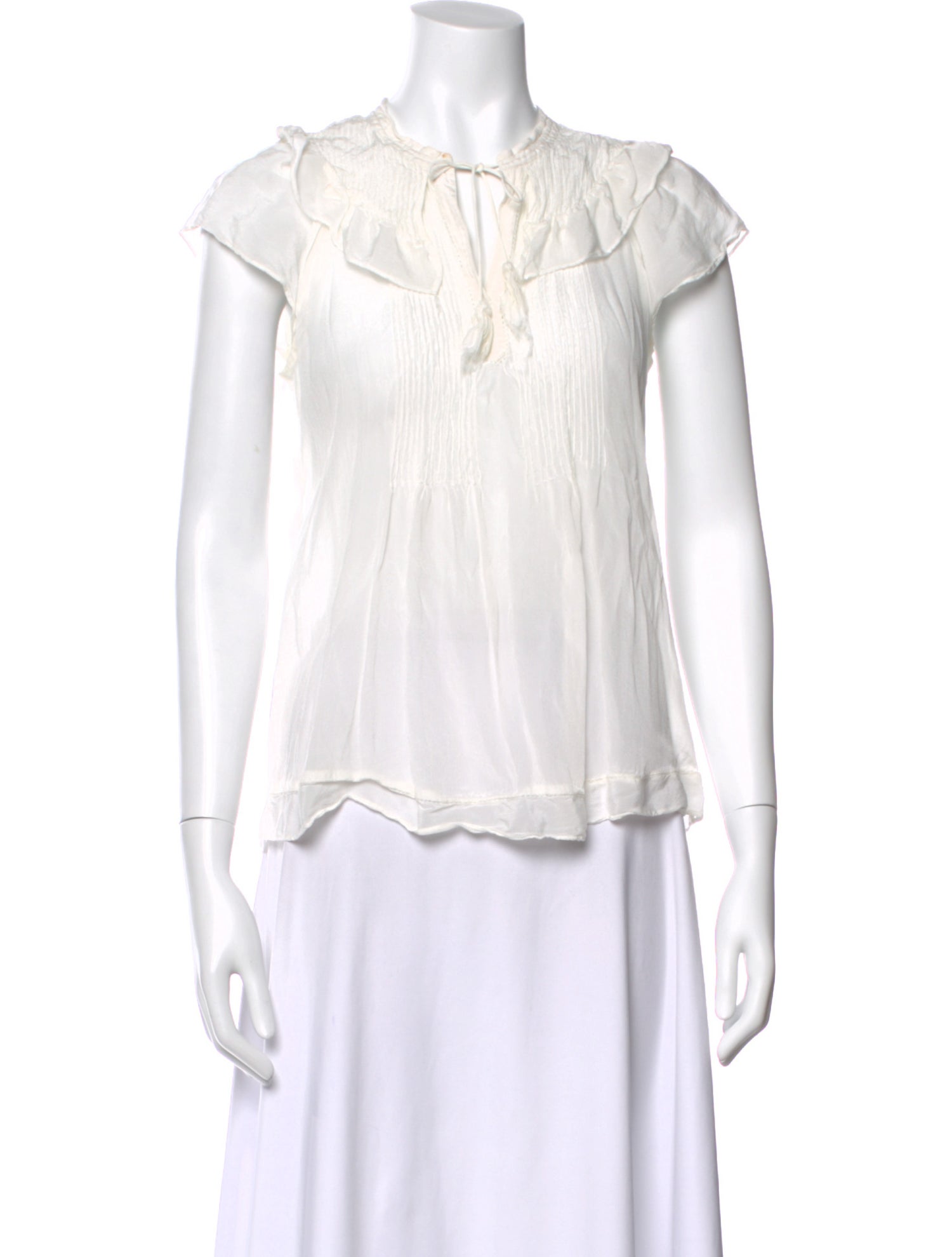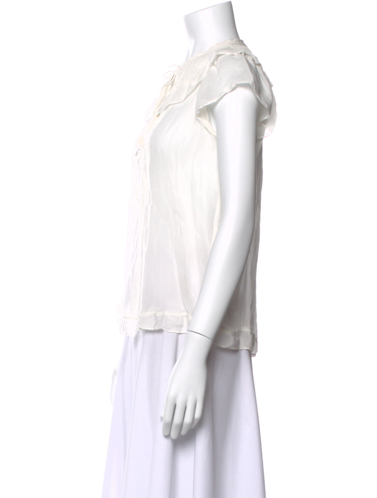 Tie Neck Short Sleeve Blouse